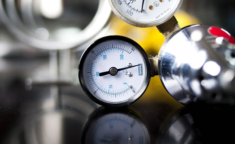 Através da aplicação de pressão positiva (nitrogênio) e acompanhamento com manômetro.